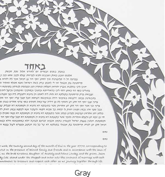 - If your ketubah design includes a colored papercut mounted on a white backing, you are invited to choose what color you would like the papercut to be.